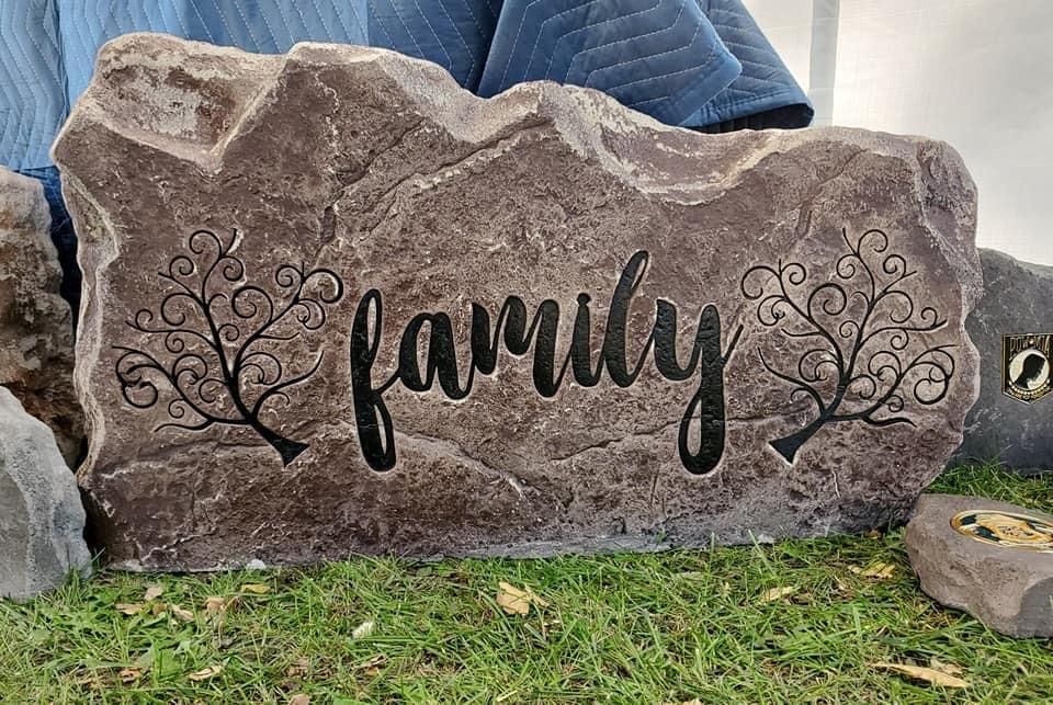 Everyone’s home is a castle, and standing regally at the entrance to your castle is your beautifully engraved boulder–the envy of friends and neighbors. Imagine your garden or yard looking royal with our water feature boulders, planter boulders, fire pits, custom mailboxes or garden benches. Whether you want to establish your family name, display a patriotic image, memorialize your pet or shout out the entrance to your rambling ranch, we’ve got what you’re looking for.